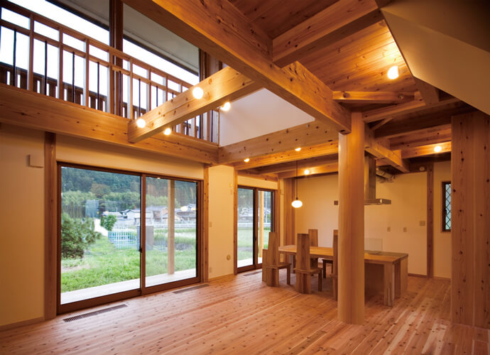 ・温熱環境の向上: 大きな空間は、空気の循環が良くなり、夏は涼しく、冬は暖かさが柔らかい環境を提供します。これにより、エアコンなどの冷暖房機器に依存することなく、年間を通じて快適に過ごすことが可能です。