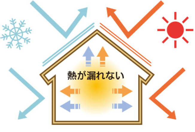 • 家全体の断熱性能を向上させ、外部との熱のやり取りを最小限に抑える。